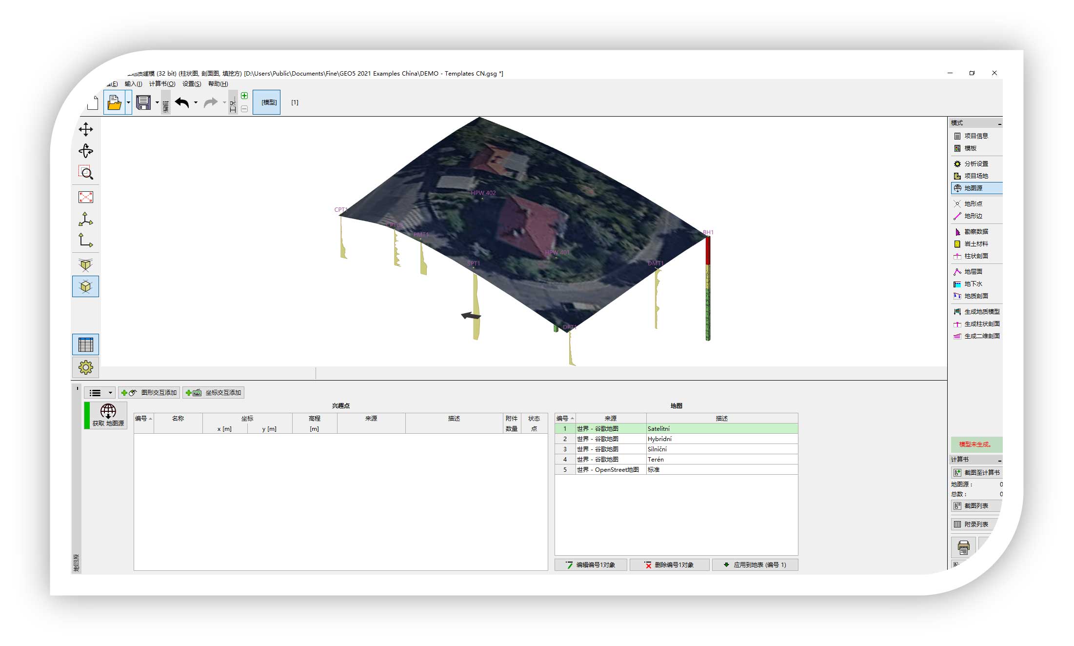 可以获取多种地图图源,并识别场地在地图中的位置,并能保存相应图件的图层、一键映射到地质模型的表面。