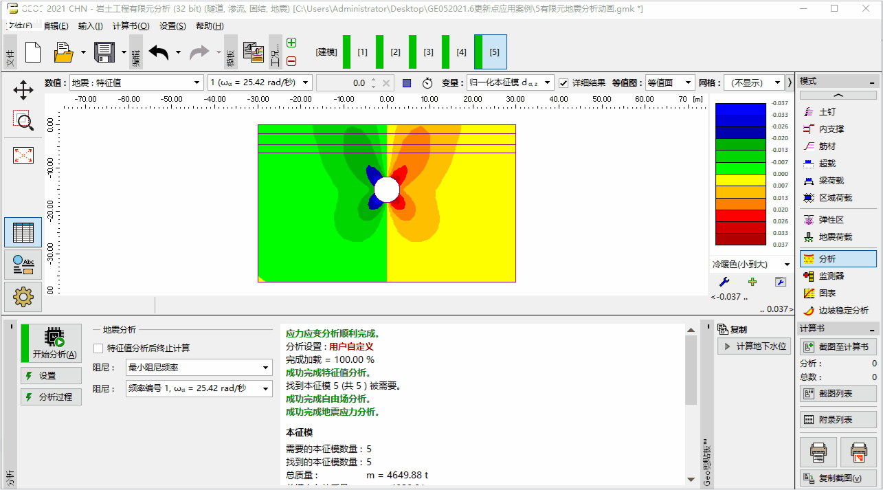 可以制作地震时程分析、固结沉降分析、非稳定流渗流分析等与时间相关的结果动画。可以设置时间间隔,按输入的间隔播放动画,也可以查看某一个状态下的结果。