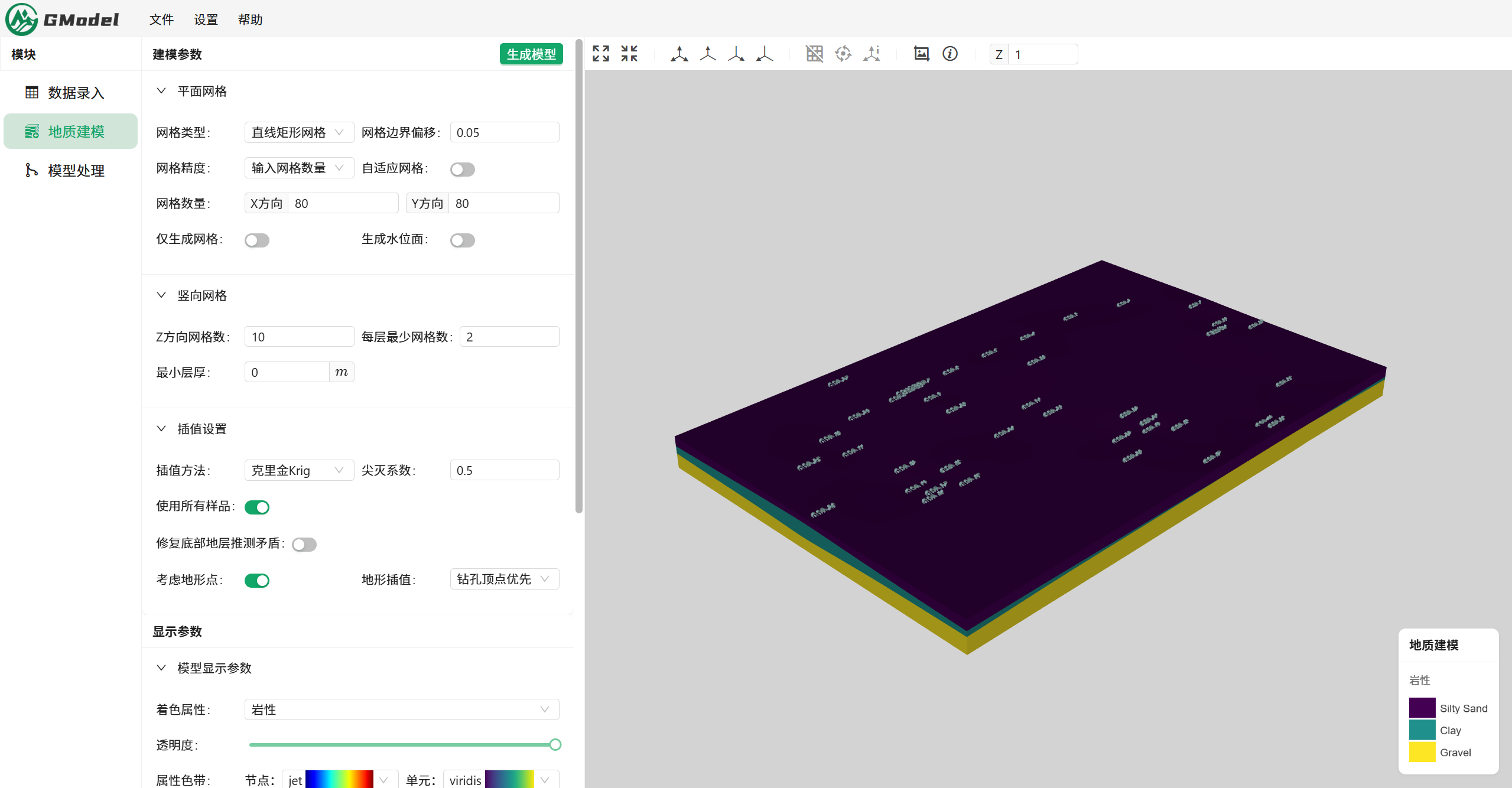 我们在得到基础建模数据之后分别用GModel和EVS进行地质建模,此处地质建模过程不再赘述,不了解的小伙伴可查看过往GModel建模相关帖子或建模视频。
